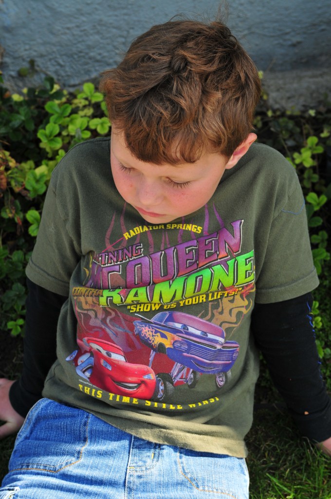 Mitch happily wearing a cars shirt on march 29, 2008